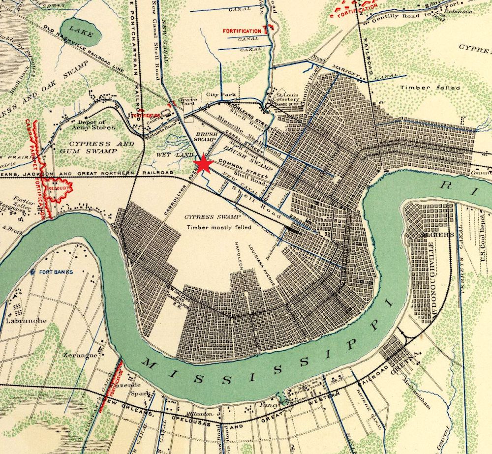 On August 16, 1863, the 16th Ohio debarked the boats which had carried them almost 400 miles from Vicksburg to Carrollton, Louisiana, and went into camp 1/2 mile east of the town. The regiment would enjoy a relaxing and luxurious camp for several weeks, until September 6. The troops would spend considerable time touring New Orleans before their next adventures began.